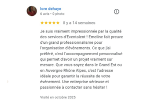 Passionnée depuis toujours par le monde de l'événementiel, je décide de poursuivre cette voie en obtenant un Bac +5 dans ce milieu et en fondant Eventalent. J’accompagne chacun d'entre vous avec une écoute attentive, une grande exigence et un sens aigu du détail. J’aime comprendre vos besoins, capter vos envies et donner vie à vos idées avec justesse.